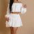 Off shoulder white skirt suit